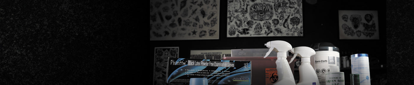 Having a stock of solid medical supplies is the backbone of every tattoo shop. PPE, single-use items, room and furniture cleaners, and skin prep products that have been tried and tested by tattoo artists are all available. Shop Jet Black Premium Supply products that have been created specifically for tattoo artists like ink caps, masks, razors, barrier film, and more.