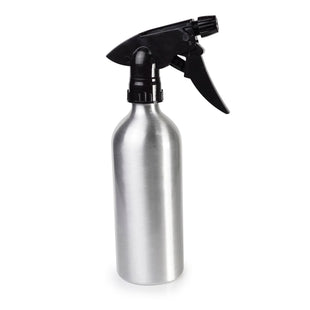 Sturdy aluminum battle with plastic trigger and spray nozzle.