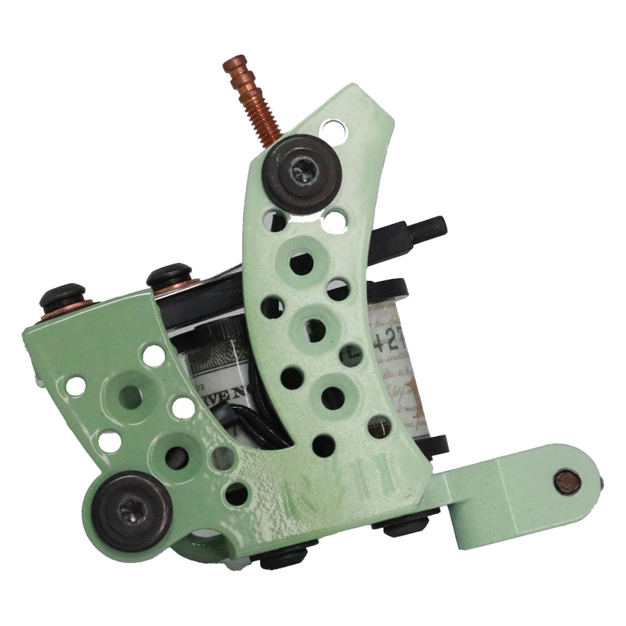 Hand-built, tuned and finished by machinist Rich Helton. Sharpie Liner built to be used with loose 8s up to 14 lingers. For bold traditional lines. Recommended voltage 6 V to 9 V depending on hand speed.