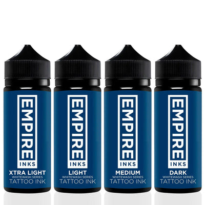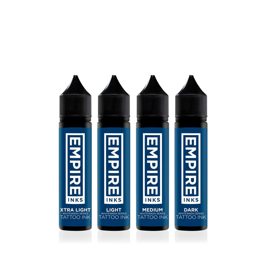 Empire Inks whitewash system allows artists to achieve a smoother gray value with less effort. Many artists add a few drops of white into their graywash. This helps us get a more deliberate value without needing to build it up through layers. You can expect consistent ink that heals similar to a semi-opaque gray but goes into the skin like a graywash.