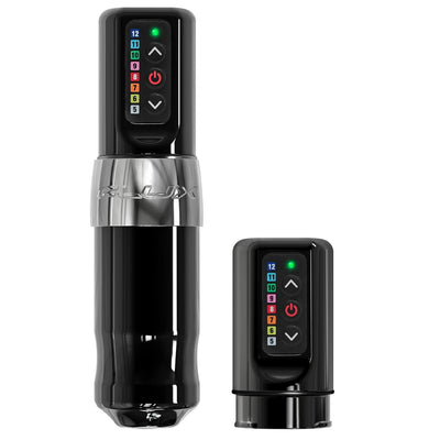 The FK Irons Spektra Flux offers completely unrestricted movement through its completely wireless design. This lightweight, 4mm stroke direct drive rotary is ideal for both lining and shading, providing steady power output for up to 10 hours. Its simple 3-button user interface allows for quick voltage adjustments in increments of .5v. Pair an iOS or Android device to the Spektra Flux via Bluetooth to adjust voltage with voice commands, check session time, and install firmware updates through the DarkLab mobile app.