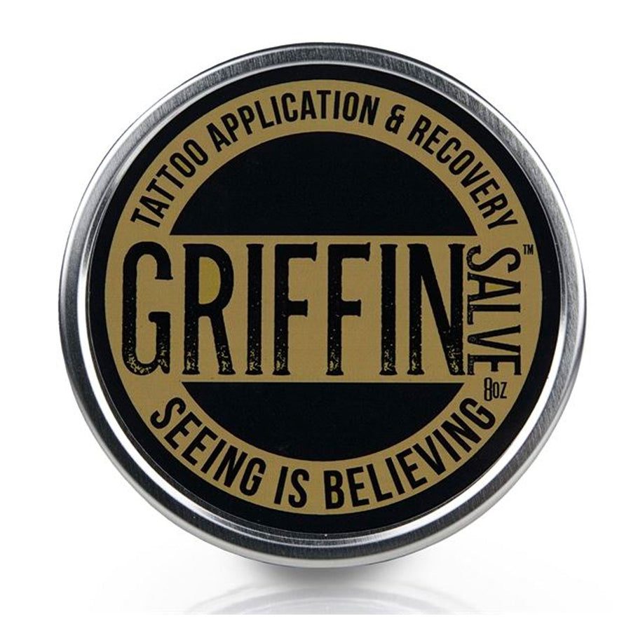 Griffin Salve is one of the industry's only exclusively distributed, limited production products. Griffin's proprietary blend of herbs is specifically formulated for topical use while tattooing and as an aftercare to soothe skin and accelerate recovery.