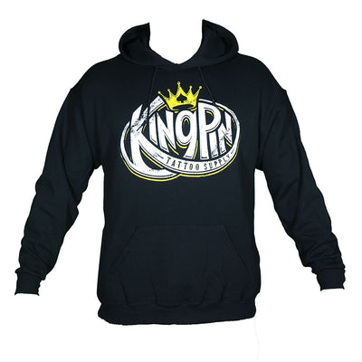 Kingpin Weathered Logo design on a 100% cotton hoodie, printed locally in St. Petersburg, FL.