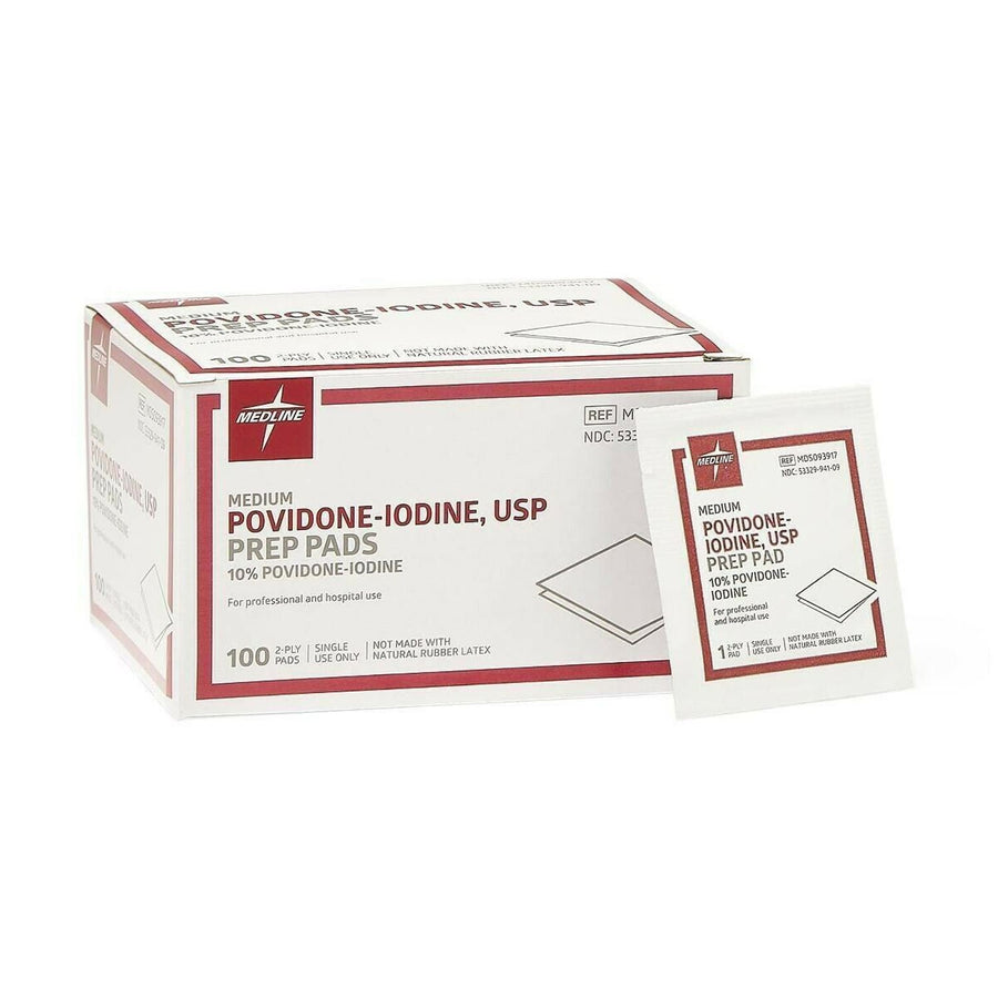 Providone Iodine Prep Pads - 1 Case (10 Boxes/100/Box)