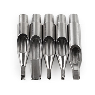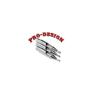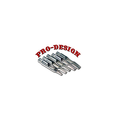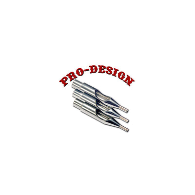 Re-designed by master machine builder Jerry Riegger, Kingpin Pro-Design Machined Tips feature a longer tip to prevent spitting and provide improved control, and a unique design that allows the tip to hold more pigment, reducing the overall the time needed to dip. All tip ends have the correct proper angle to help with viewing the needle while tattooing. Pro-Design Tips are polished and made of high grade stainless steel.