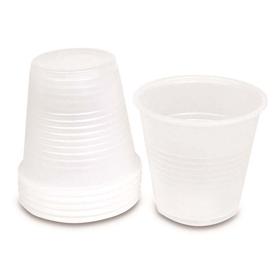 These translucent cups are made of durable quality plastic and hold 5oz of liquid.