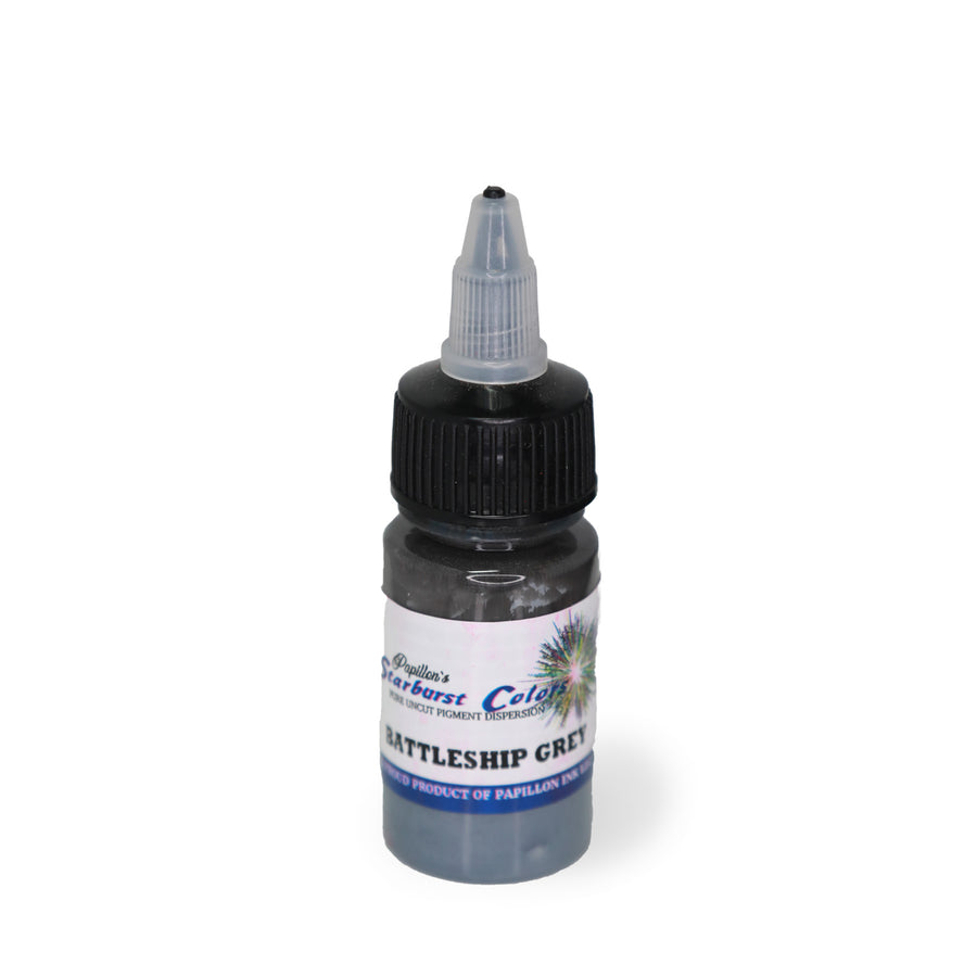 Introducing Battleship Grey available in 1oz & 2oz, the true Starburst Colors, created and distributed by us since 1995. If you dig a little deeper, you'll discover that many others have misrepresented their inks – ours are the originals, and not the imitations! Michael Nicholson of Papillon was the innovator behind this lifetime-lasting ink, with its incredibly bold and vibrant hues, revolutionizing how artists could showcase their work with pigment that endures for a lifetime. Mike (Papillon) took his ink worldwide under the name Starbrite Colors. After his passing in 1998, his wife, Meredith, continued the legacy of crafting these exceptional inks and manufacturing Coil machines."
