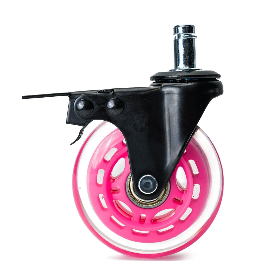 Roller blade wheels are now available as accessories for TATSoul & ComfortSoul artist chairs.  Our heavy-duty chair wheels are made from industrial grade steel, precision ball bearings, and durable polyurethane wheels for smooth rolling action supporting up to 400lbs. Wheels are easy to install – simply pull-out old wheels & pop in new ones!  Set of 5 includes 2 locking wheels, which must be placed adjacent to each other for optimum stopping power.